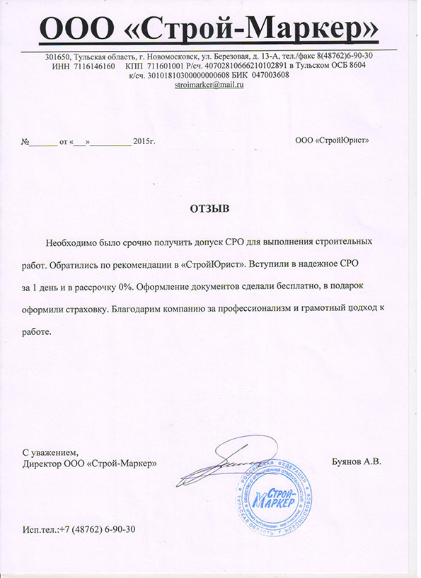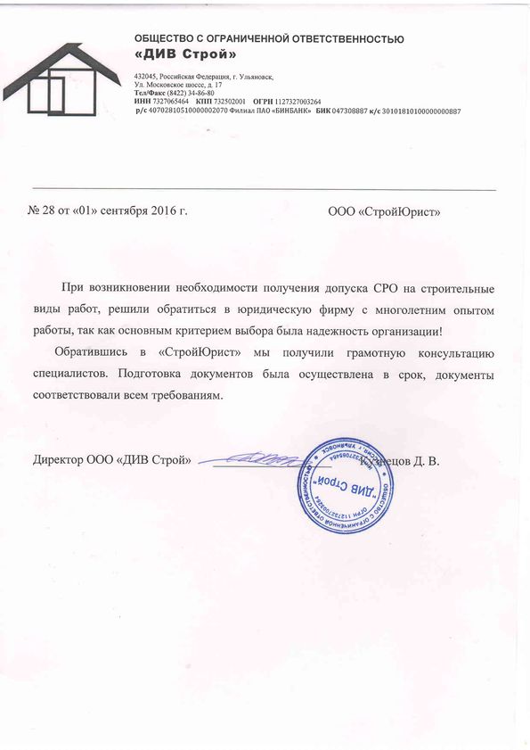 Отзывы клиентов "СтройЮрист" по вступлению в СРО в Омске
