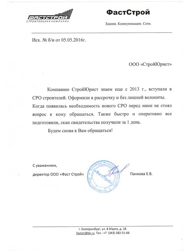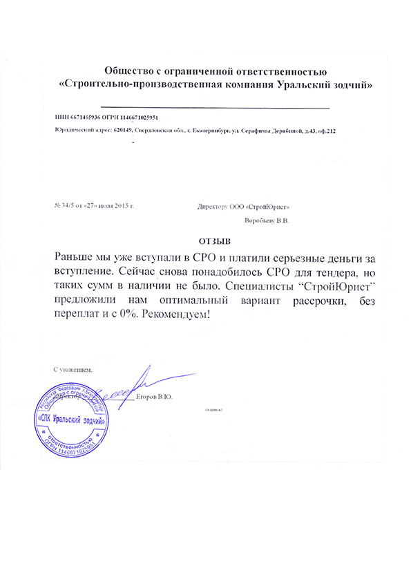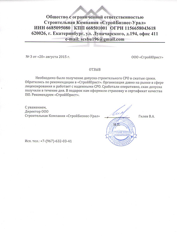 Отзывы клиентов "СтройЮрист" по вступлению в СРО в Омске