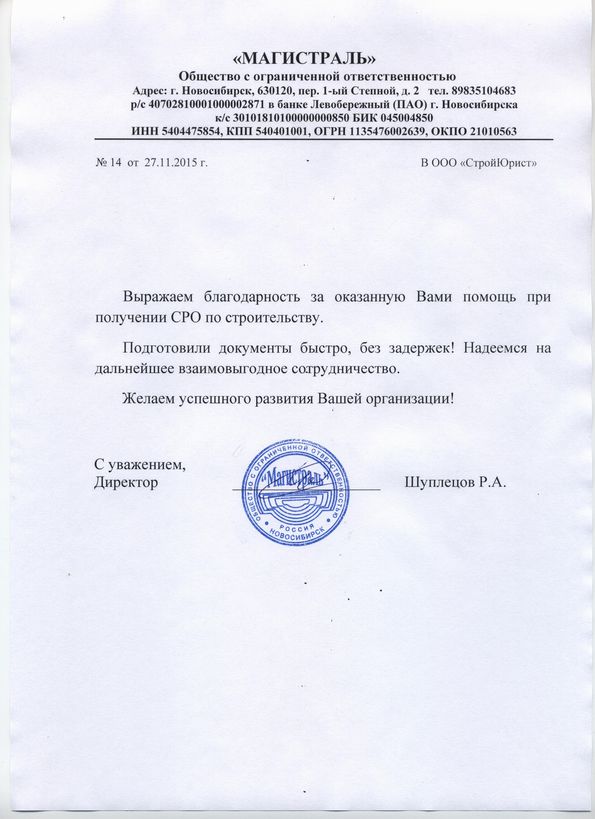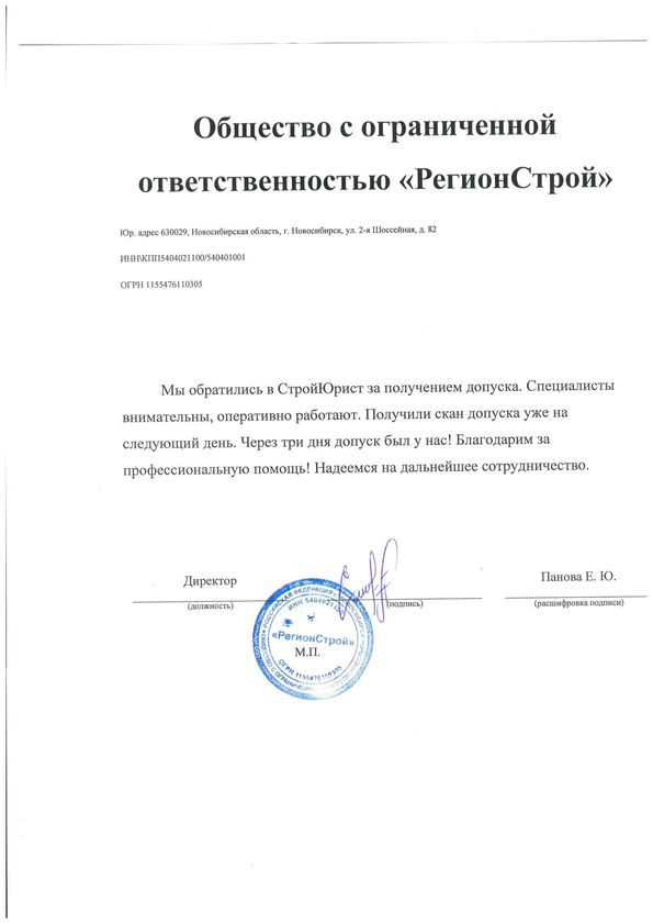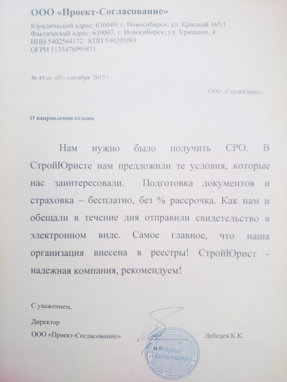 Отзывы клиентов "СтройЮрист" по вступлению в СРО в Омске