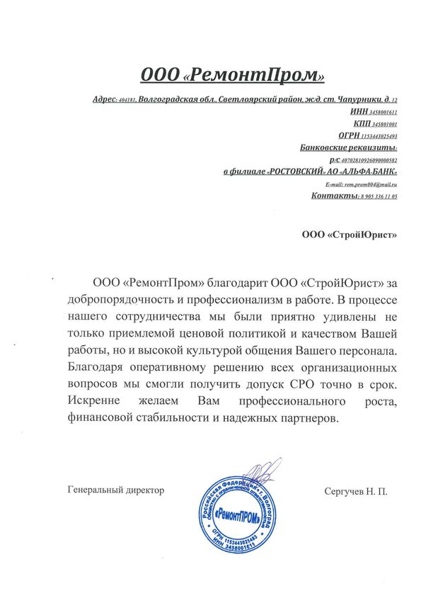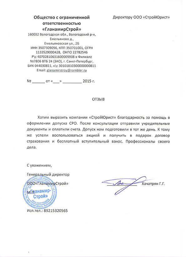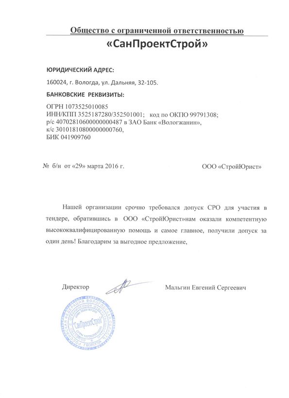 Отзывы клиентов "СтройЮрист" по вступлению в СРО в Омске